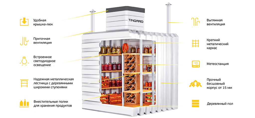 Продуманная комплектация позволяет использовать погреб сразу после монтажа.