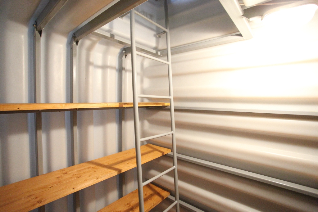 В новой модели реализованы пологая лестница и увеличенный люк для комфортного входа, металлическая роллета, оснащенная замком, которая обеспечивает необходимый терморазрыв для поддержания стабильной температуры в погребе в любое время года.