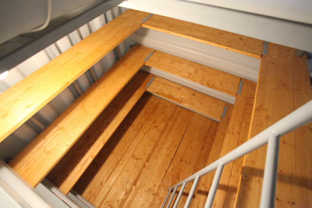 2. Погреб "Тингард" оборудован деревянными полками, полом, приточной и вытяжной вентиляцией, освещением, лестницей и крышкой-люком. Вам не нужно беспокоиться о дополнительном оборудовании.